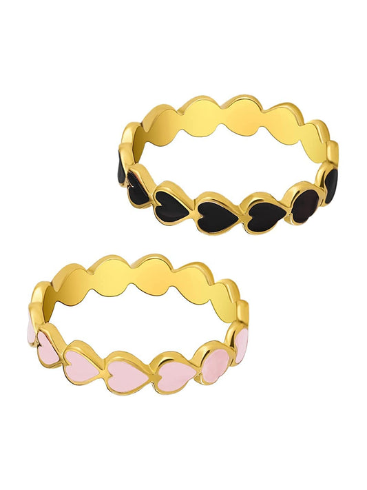 Ring For Women Combo Of 2 Pcs Black and Pink Heart Shape Gold plated Designed Ring For Women and Girls (Size US 6)