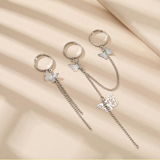 Rings for Women and Girls Chain Finger Rings | Butterfly Adjustable 3 Pieces Silver Punk Chain Finger Rings Three Fingers Open Ring | Birthday Gift For Girls and Women