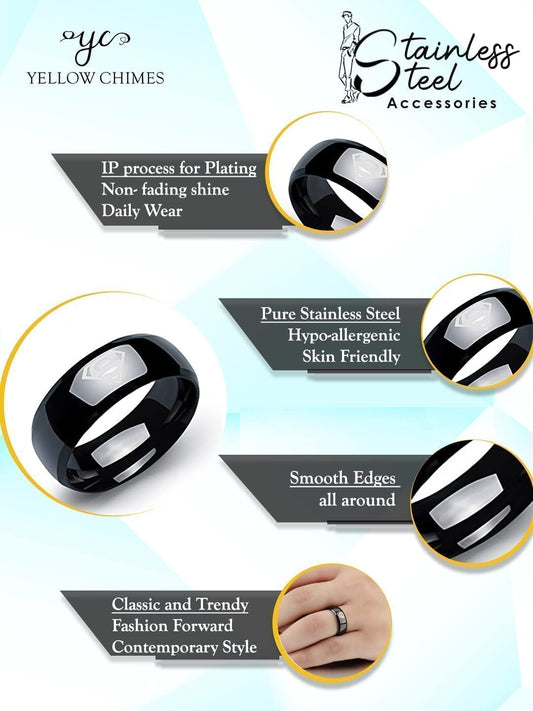 Titanium Superman Stylish Black Ring for Men and Boys, US 8 (YCFJRG-SUP2245-8-BK)