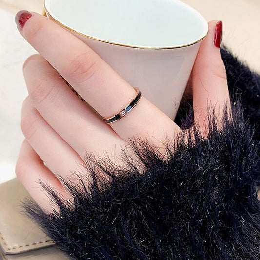 Rings for Women and Girls Fashion Black Band Ring | Stainless Steel Rose Gold Plated Finger Ring for Women | Birthday Gift For Girls & Women Anniversary Gift for Wife