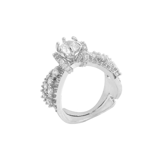 Rings for Women and Girls American Diamond Ring | Silver Tone White AD Studded Adjustable Ring for Women | Birthday Gift For girls and women Anniversary Gift for Wife