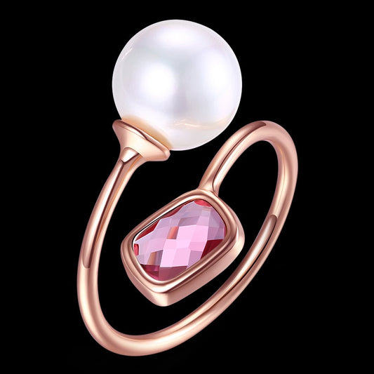 Designer Square Crystal & Pearl Rose Gold Adjustable Party Ring for Women & Girls