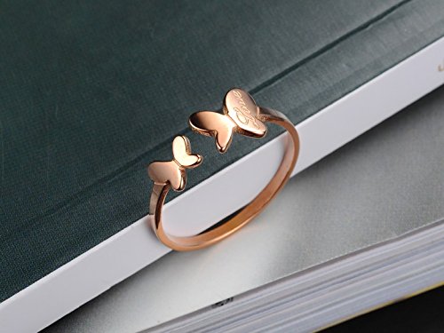 Dual Butterfly Love in-Script Surgical Steel Rose Gold Ring for Girls and Women