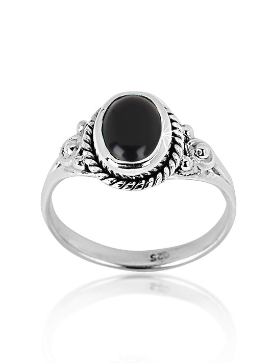 Black Onyx Gemstone 925 Sterling Silver Hallmark and Certified Purity Finger Ring Earrings for Women (Silver, Onyx Black)