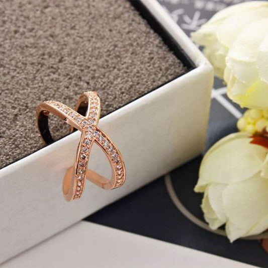 Exclusive Italian Design Luxurious Criss Cross Studded Cubic Zirconia Rose Gold Plated Stylish Rings for Women and Girl's(Adjustable)