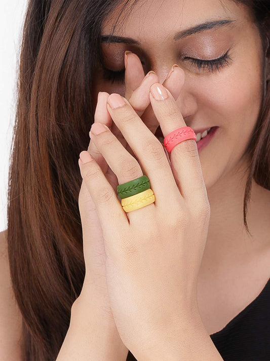 Trendy Multicolor Combo of 7 Pcs Sports Gym Flexible Silicone Finger Band Rings for Women & Man (Unisex)