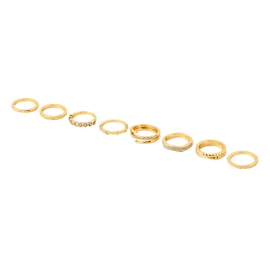 Rings for Women and Girls Fashion Aesthetic Golden Ring Set | Gold Plated Aesthetic Ring Knuckle Rings Set 8 Pcs Combo Geometric Rings | Birthday Gift For Girls and Women