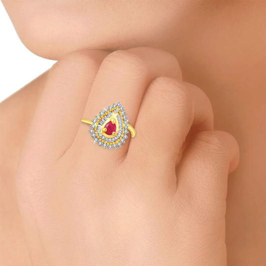 Premium A5 Grade American Diamond 18K Gold Plated Traditional Adjustable Ring for Women & Girls