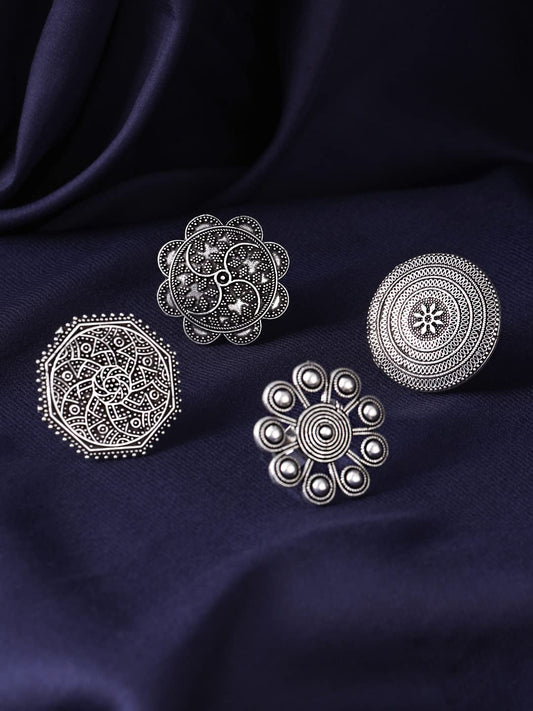 Rings for Women and Girls Silver Oxidised Rings | Combo of 4pcs Adjustable Oxidised Rings for Girls | Birthday Gift For girls and women Anniversary Gift for Wife
