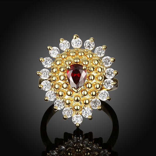 Red Cubic Zircon Zadau Style Gold Plated Ring for Women and Girls