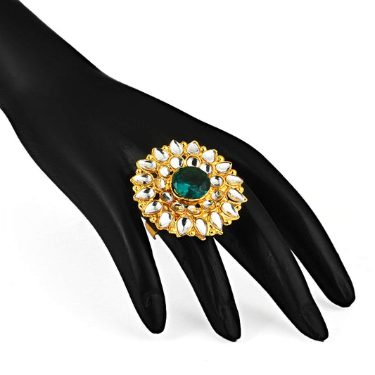 Traditional Ethnic Kundan Studded Gold Plated Cocktail Wedding Kundan Rings for Women & Girls