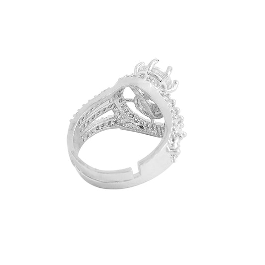 Rings for Women and Girls American Diamond Ring | Silver Tone White AD Studded Adjustable Ring for Women | Birthday Gift For girls and women Anniversary Gift for Wife