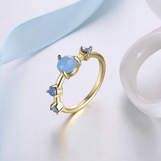 Manmade Aqua Opal Blue Gold Ring for Women & Girls
