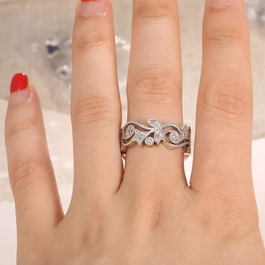Designer Crafted Creative Cut work Floral Leaf Design Studded Crystal Silver Plated Band Ring For Women And Girl's
