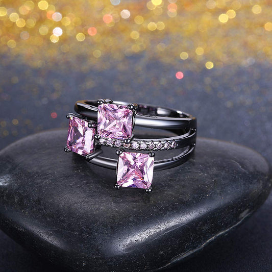 925 Sterling Silver Rings for Women and Girls & Women | Black Crystal Studded Adjustable Ring | Birthday Gift for girls and women Anniversary Gift for Wife|With Certificate of 925 Stamp