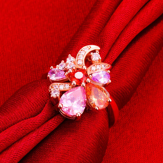 Multicolor Flower Swiss Zircon Rose Gold Crystal Ring for Women