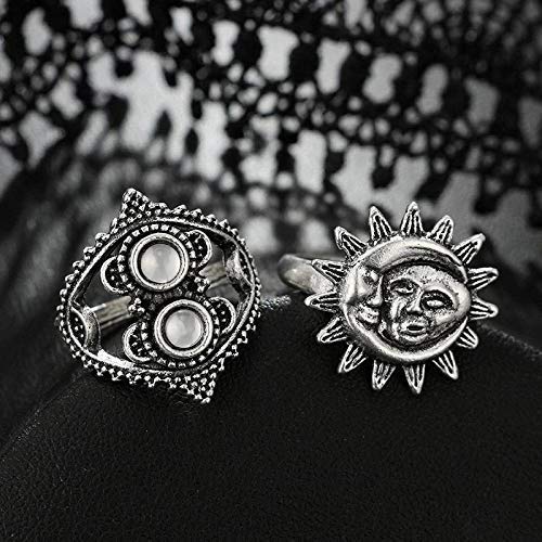 Women's Traditional Silver Floral Shaped Adjustable Oxidised Finger Rings Set Combo