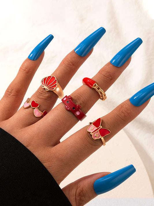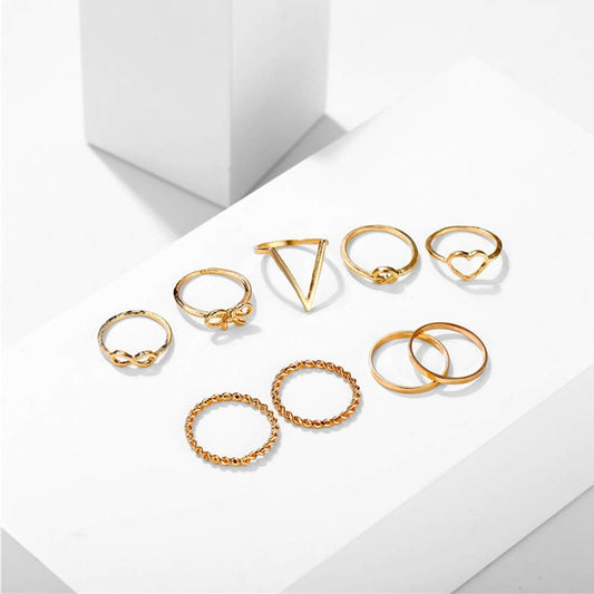 Rings for Women and Girls | Gold Aesthetic Ring Set | Gold Plated Knuckle Rings Combo | Aesthetic Rings | Accessories Jewellery for Women | Birthday Gift for Girls and Women for Wife