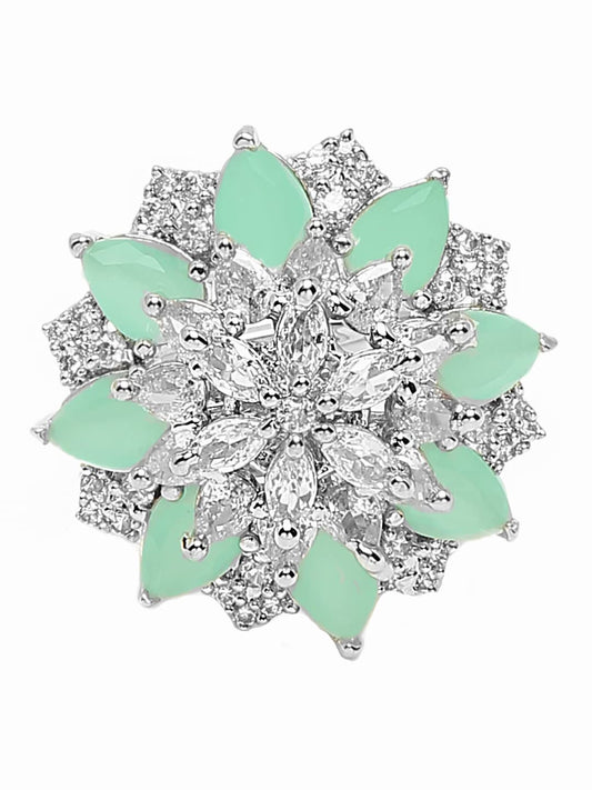 Rings for Women American Diamond Ring Rhodium-Plated Crystal AD-Studded Floral Finger Ring For Women and Girls. (RG 2)