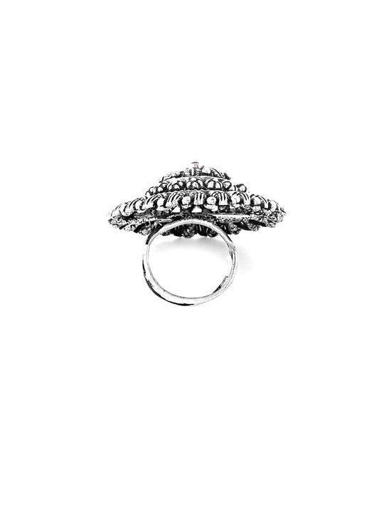Oxidised Silver ring for women Ethnic Kolhapuri Circular Traditional Ring For Women & Girls