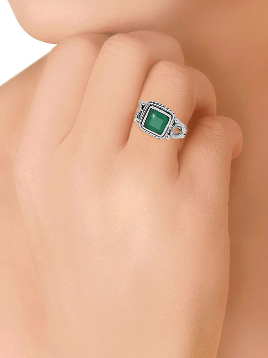 Rings for Women Silver Plated Natural Light Green Emerald Gemstones Square Shaped Crystal Rings for Women and Girl's.