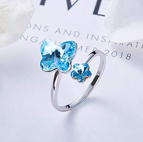 Rings for Women and Girls Blue Crystals from Swarovski Ring Adjustable Crystal Rings Silver Toned Butterfly Finger Ring for Women | Birthday Gift For girls and women Anniversary Gift for Wife