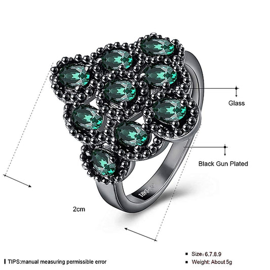 Rings for Women Green Crystal Ring Black Gun Plated Ring for Women and Girls (Ring Size US 6)