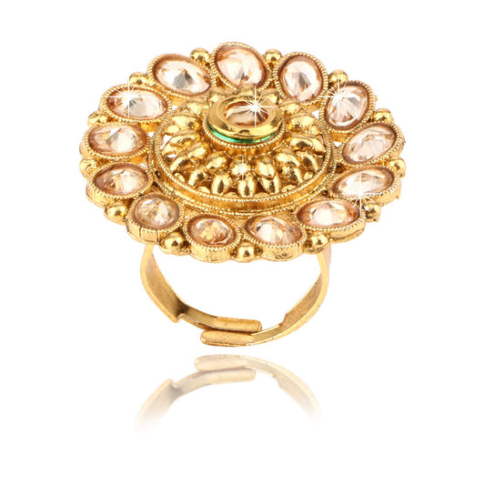 Rings for Women Traditional Kundan Rings Classic Gold Plated Cocktail Golden Wedding Rings for Women and Girls.