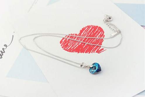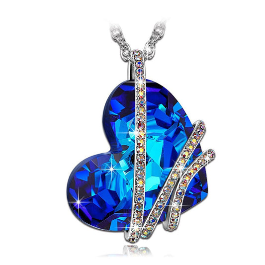 Blue Ocean Heart Crystal Pendant Necklace for Women and Girls