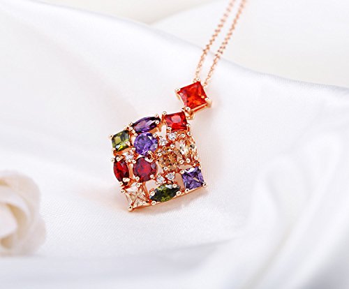 Multi-Color Sparkling Square Swiss Cubic Zirconia 18K Gold Plated Pendant for Girls and Women