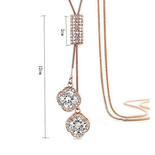 Sparkling Crystal Rose Gold Stylish Long Chain Pendant Necklace for Womena nd Girls