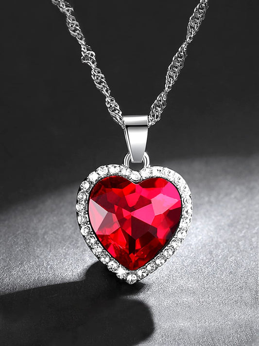 Pendant for Women and Girls Crystal Pendant for Women | Heart Shaped Pendant | Red Stone Pendant with Chain| Birthday Gifts For Women Valentine Gift for Girls