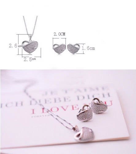 Crystals Sparkling Heart by Copper and Cubic Zirconia Jewellery Sets for Women (Silver)(MXFJPS-PA1426-SL)