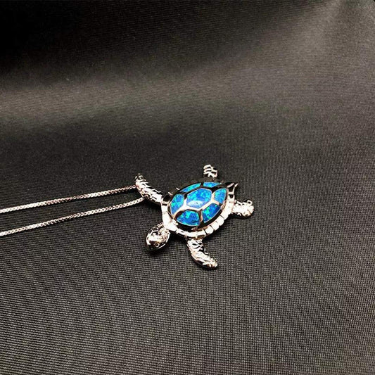 Exquisite Lovely Good Luck Turtle Blue Opal Charm Tortoise Silver Plated Pandant Necklace For Women And Girl's
