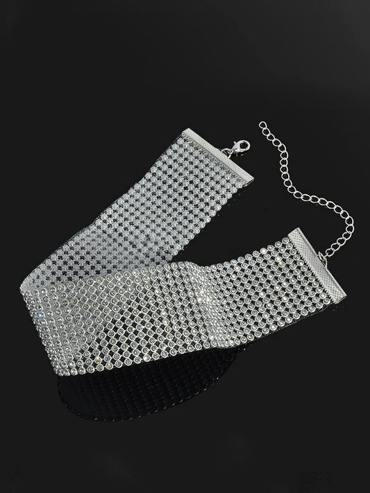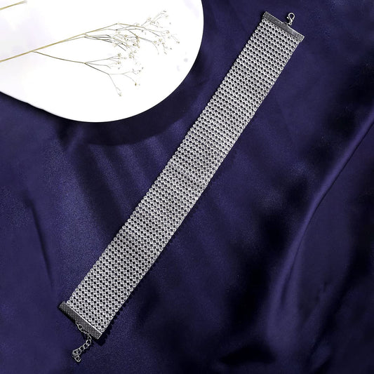 Necklace for Women and Girls Fashion Silver Choker Necklace for Women Western | Silver Toned Wide Rhinestone Choker Necklace| Birthday Gift for Girls & Women Anniversary Gift for Wife