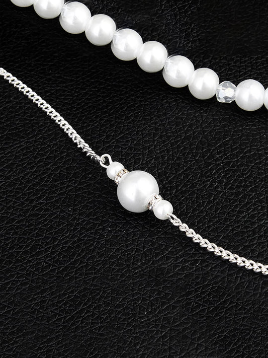 Back Necklace For Women Silver Tone Pearl Embellished Back Chain For Women and Girls