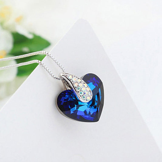 Pendant for Women and Girls Blue Crystals from Swarovski Pendant Valentines Special Silver Toned Heart Pendant for Girls | Birthday Anniversary Gift for Wife Birthday Gift for girls and women