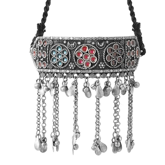 Necklace for Women and Girls Silver Oxidised Necklace for Women | Big Charm Drop Designed Oxidised Silver Necklace for women | Birthday Gift for girls and women Anniversary Gift for Wife