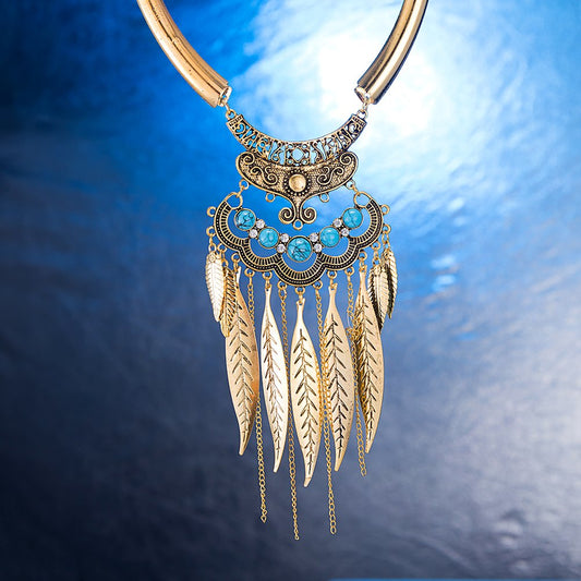 Trendy Collection Designer Tassel Leaves Blue Necklace For Women & Girls
