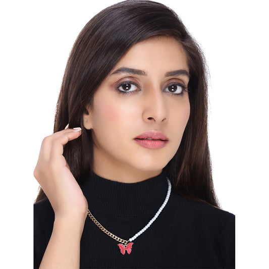 Choker Necklace for Women 2 Pcs Combo Butterfly Chain Choker Necklace for Girls Gold Plated Multicolor Layered Choker Necklace for Women and Girls