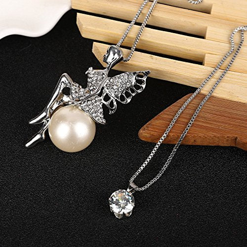 Long Chain Necklace for Women Dual Chain Pendant for Girls Angle on Pearl Long Chain Pendant Necklace for Women and Girls