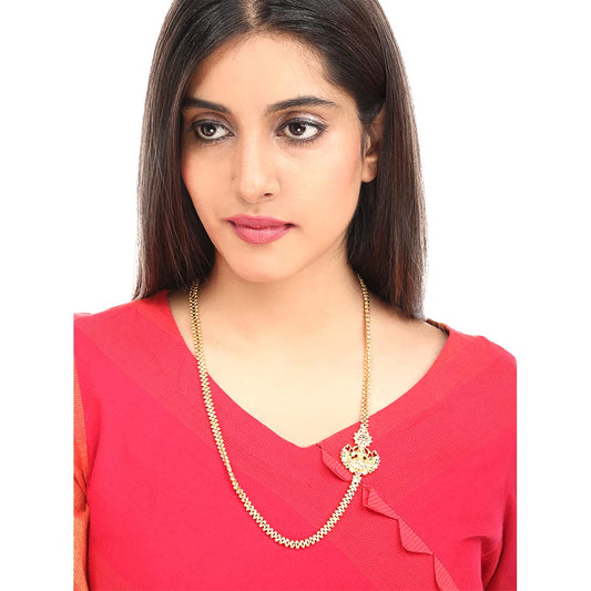 Classic AD/American Diamond Studded Gold Plated Necklace Lakshmi Mugappu Mopu Chain Thali chain Design with side Mugappu for Women and Girls