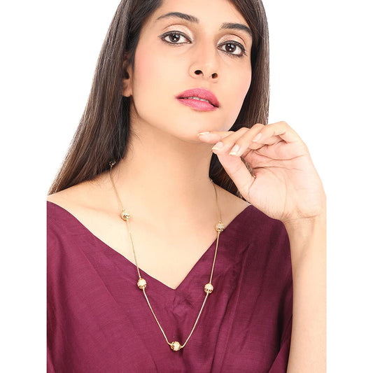 Classic AD/American Diamond Studded Gold Plated White Crystal Ball Chain Design Necklace for Women and Girls, Gold, White, Medium (YCADNK-01BALCHN-GL)