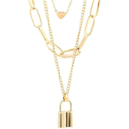 Layered Necklace for Women Chain Choker Necklace Gold-Plated Western Key Heat Locket Multi layered Chain Necklace for Women and Girls