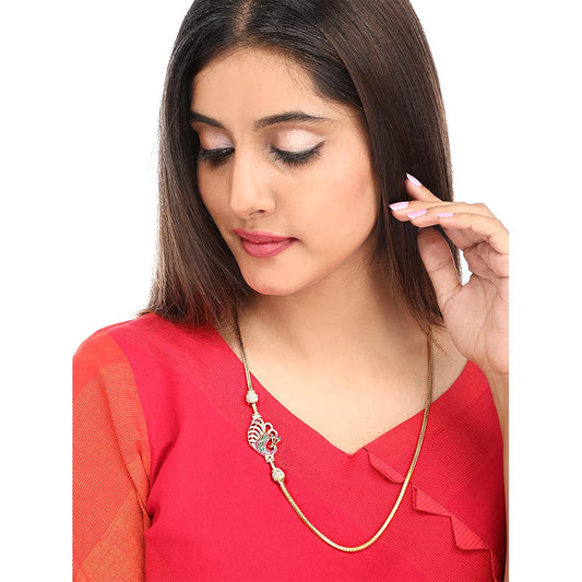 Classic AD/American Diamond Studded Gold Plated Necklace Peacock Ball Mugappu Mopu Chain Design Thali chain with side Mugappu for Women and Girls, Gold, Multicolour, Medium