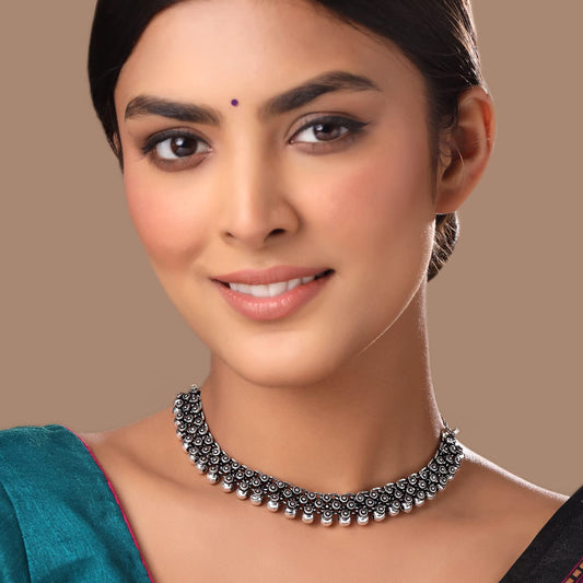 Necklace for Women and Girls Silver Oxidised Necklace for Women | Oxidised Silver Button Designed Necklace for women | Birthday Gift for girls and women Anniversary Gift for Wife