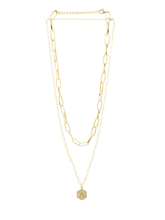 Layered Necklace for Women Chain Choker Necklace Gold Plated Big Link Chain With Letter 'A' Pendant Necklace for Women and Girls.