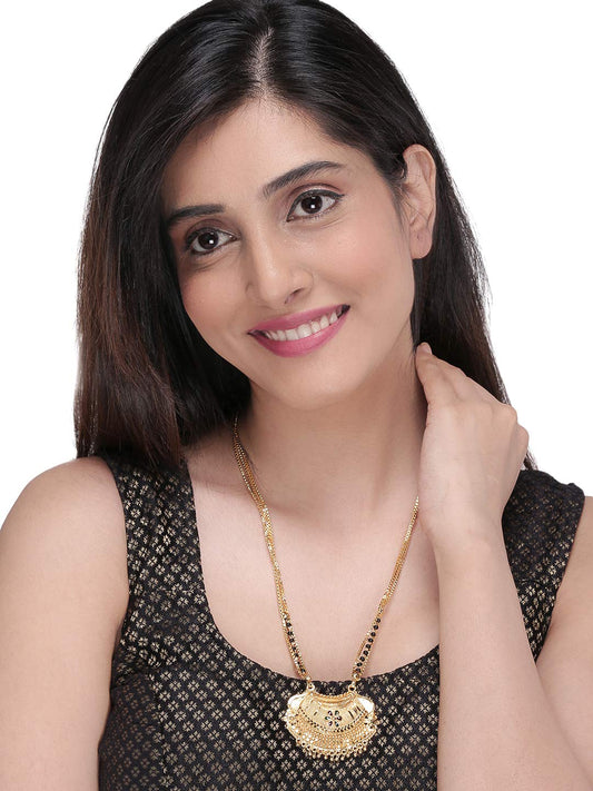 Ethnic Traditional One Gram Gold Glorious Hand Meena Maharashtrian Style Long Chain Black Beads Mangal Sutra Tali/Tanmaniya/Nallapusalu/Mangalsutra for Women