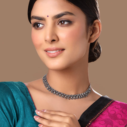 Necklace for Women and Girls Silver Oxidised Necklace for Women | Oxidised Silver Button Designed Necklace for women | Birthday Gift for girls and women Anniversary Gift for Wife