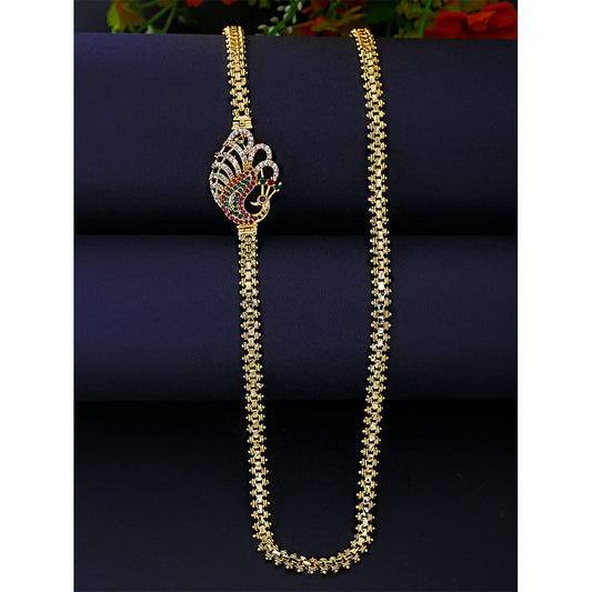 Classic AD/American Diamond Studded Gold Plated Peacock Necklace Mugappu Mopu Chain Design Thali chain with side Mugappu for Women and Girls, Gold, Multicolour, Medium (YCADNK-03MOPUCHN-GL)